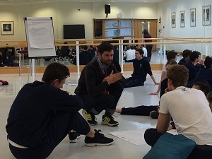 Photo: DCD supported dancer Mark Kelly speaking to students of The Royal Ballet School