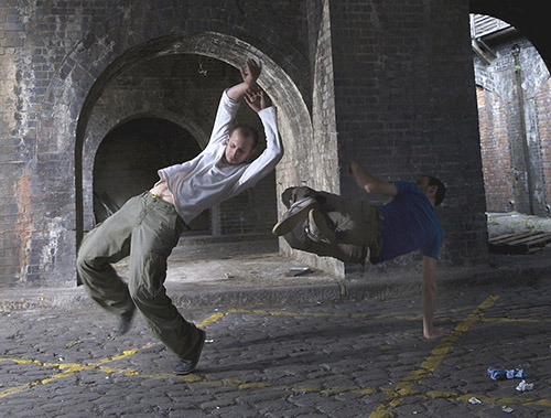 Leon dancing with Hofesh Shechter. Photo: Carl Fox